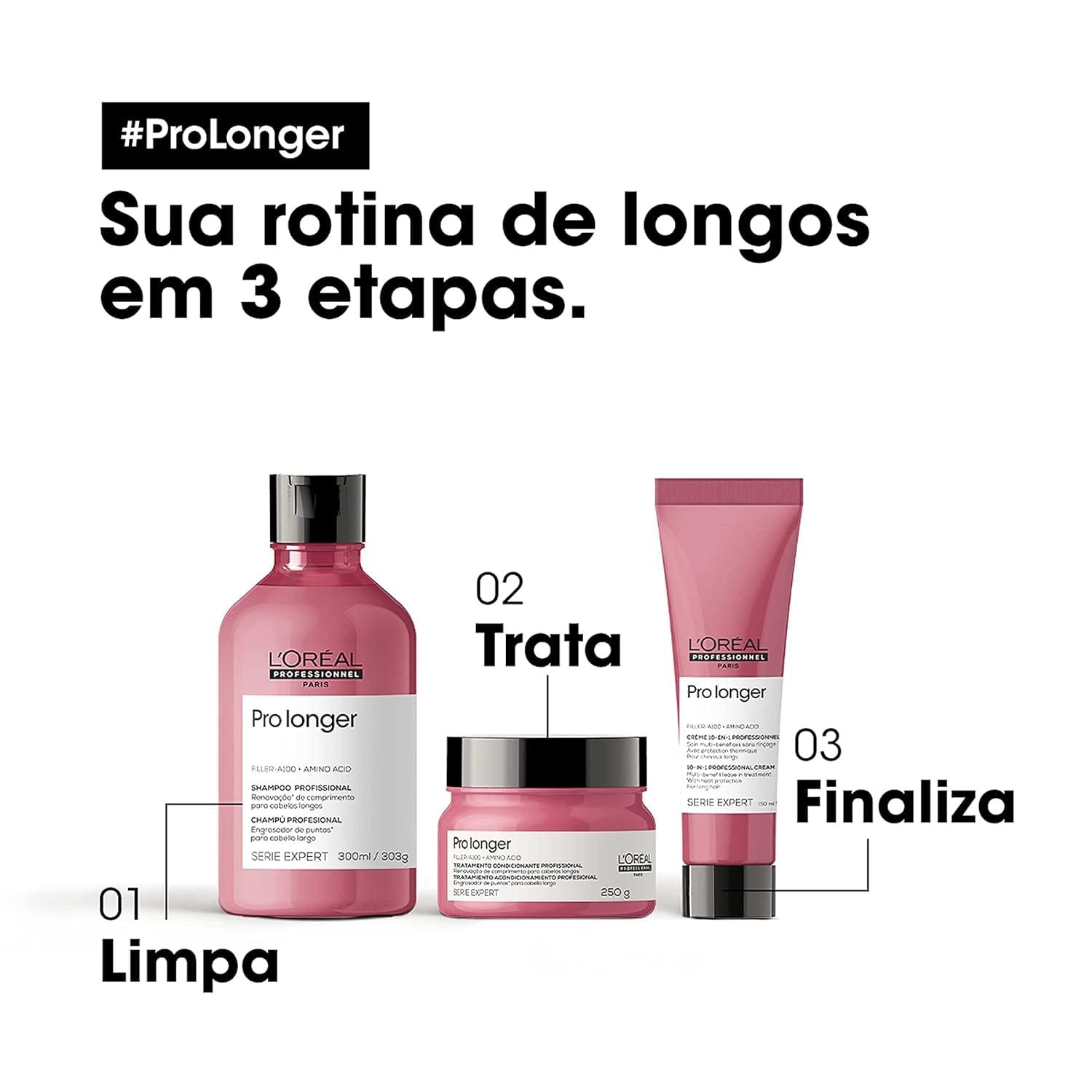 A linha Pro Longer foi desenvolvida especialmente para cabelos longos com pontas finas e quebradiças: um tratamento profissional preenchedor de pontas instantâneo, para cabelos mais compridos e densos